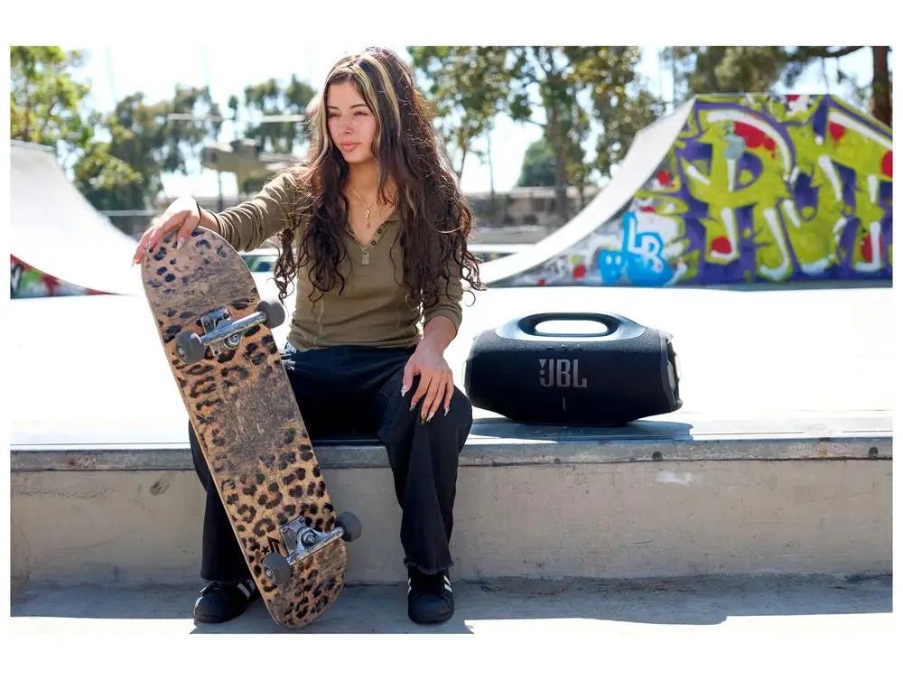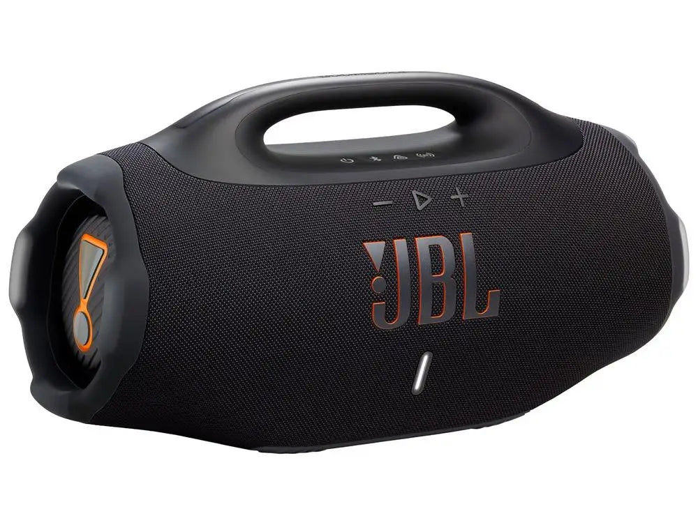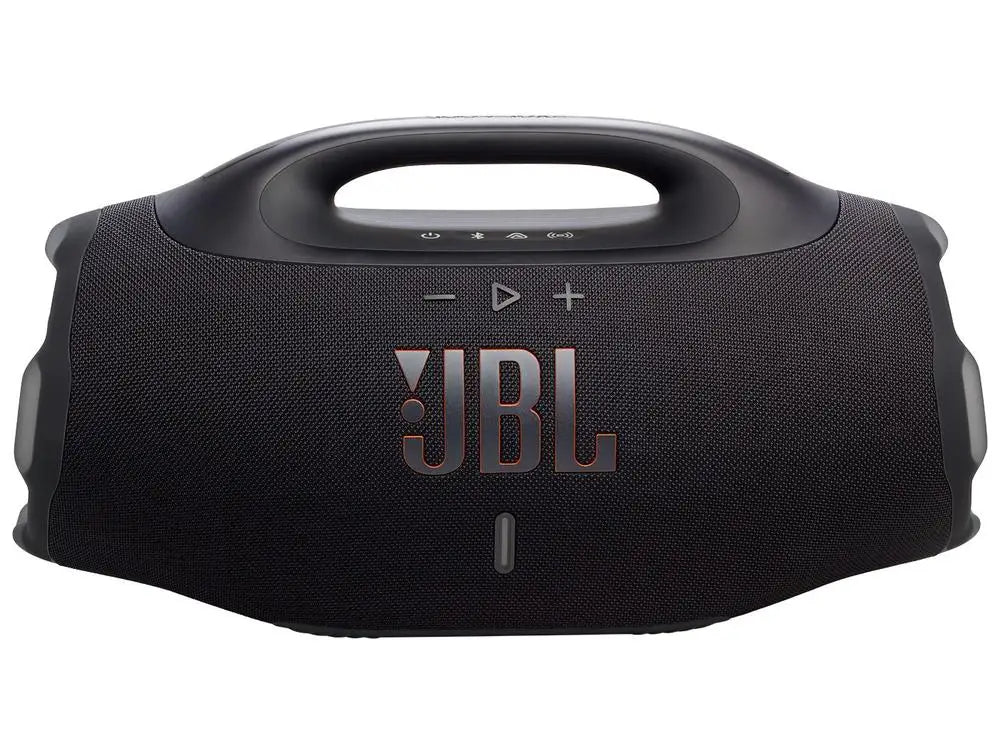 JBL Boombox 4 JBLBOOMBOX4BLK is a portable, amplified speaker. It was meant to be taken anywhere. With Auracast technology, you can connect multiple speakers that have the same technology. Its 99.02 Wh battery, which is equivalent to 4584 mAh, guarantees autonomy for your hours of music. The charging time of the battery is 3 hours. It has two powers: 210 W RMS (plugged in) and 200 W RMS (using the battery). The speaker has USB-C and Bluetooth 5.4 connection, and is compatible with smartphones, tablets and notebooks with Android, iOS and Windows operating systems. It is dust and water resistant, with a degree of protection IP68. The JBL Boombox 4 has audio components that include two 5-inch woofers, two 0.75-inch tweeters and three passive radiators, one of which is in a “racetrack” format. Its frequency response ranges from 37Hz to 20kHz.